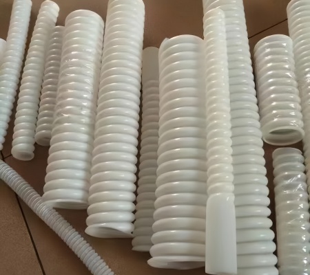 In summary, PTFE PTFE corrugated pipes, with their excellent characteristics, can be widely used in various fields such as chemical, mechanical, electronic, electrical, military, aerospace, food, petroleum, textile machinery, electrical insulation, environmental protection, etc.