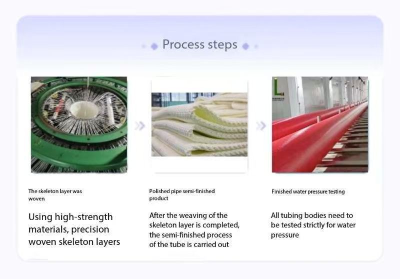 It is flat when it is not in use, which has the advantages of small volume, easy winding, convenient storage and transportation. Products with high strength, long length, large diameter, high pressure, abrasion resistance, puncture resistance, weather resistance, chemical resistance, large flow, convenient connection and other characteristics, can adapt to different landforms and geomorphology, can be widely used in a variety of complex environments.