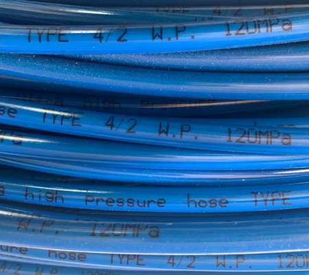 Thermoplastic hydraulic hose is thinner than rubber hose with the same inside diameter, it provides superior abrasion resistance, the polyester tube provides excellent low temperature, flexibility and resistance to a wide range of chemicals and petroleum base products. It is commonly used in construction equipment, lubrication lines and hydraulic lift equipment, pressure gauge and valve, and water jetting so on.